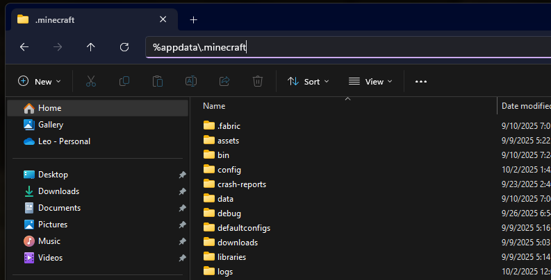 Open a File Explorer and type in or paste the above address in the address bar to find the main data folder where the mods and shaderpacks folders are: